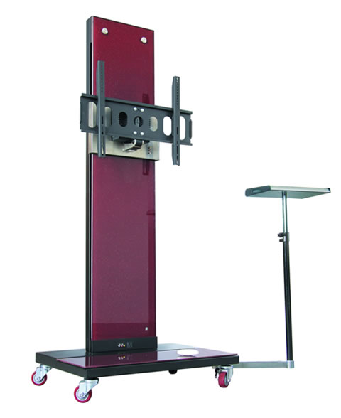 電動遙控電視機機架——移動式移動式電視機機架是在導軌式電視機機架的基礎上在導軌下端安裝了帶有輪子的可移動平臺,動作及控制方式和導軌式一致,可實現(xiàn)在1100毫米范圍內的升降,左右36度的角度調整以及前后15度的俯仰調整,所有動作均為遙控操作。此款支架還可根據需要隨意改變位置。支架底座還附有可伸縮的電腦托架,正面裝飾板可選用噴繪玻璃,印花樹脂板等材料。是一款專為學校教學,電視會議場所以及商場,展覽館等臨時需要可視設備的工作需要而開發(fā)研制的產品。