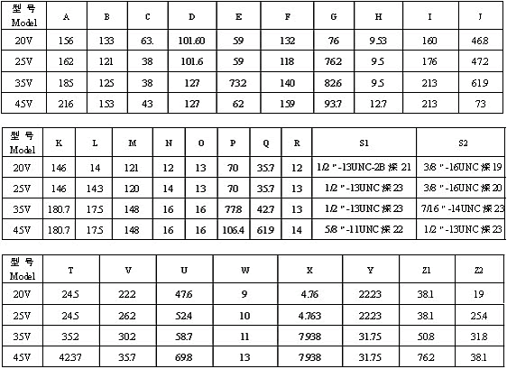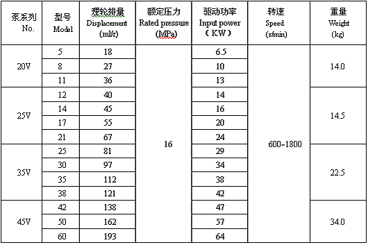 主要技術(shù)參數(shù) Specifications 【抗磨液壓油粘度40cst(ISOVG32油,油溫40℃),轉(zhuǎn)速1500r/min,進(jìn)口壓力0MPa】 說明: 1 驅(qū)動功率指在額定壓力16MPa工況下的值。 2 當(dāng)工作轉(zhuǎn)速n≠1500r/min時,驅(qū)動功率可按近似公式“表中值×n/1500”計算得出其近似值。 3 可搭配成2520V、3520V、3525V、4520V、4525V和4535V雙聯(lián)泵。