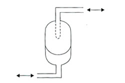 在液壓回路,由于急速開關(guān)或使負(fù)荷突然變化,從而在管路中發(fā)生沖擊壓力,成為噪音、管路破損等原因,設(shè)置蓄能器就能吸收(緩和)沖擊 |