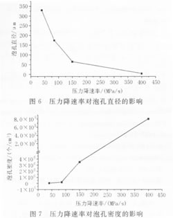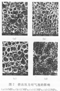 擠出口模溫度對(duì)微孔塑料成型的影響主要表現(xiàn)在以下幾個(gè)方面:1)溫度的升高可以降低界面張力,根據(jù)氣泡成核的聚合物刷子模型,能使所形成的氣泡核半徑減小。 2)氣體在聚合物熔體中的溶解度一般隨溫度的升高而降低,因此,當(dāng)溫度提高時(shí),氣體的溶解度會(huì)相應(yīng)降低,不利于微孔塑料的成核。 3)隨溫度的升高聚合物熔體的強(qiáng)度(根據(jù)定義,聚合物熔體強(qiáng)度可以認(rèn)為是當(dāng)氣泡發(fā)生膨脹時(shí),在氣泡壁周圍的流域中,氣泡壁對(duì)延伸流的阻礙程度)會(huì)降低.從而降低氣泡核的穩(wěn)定性,使氣泡容易發(fā)生合并、塌陷等現(xiàn)象, 不利于微孔塑料的加工。綜上所述,在微孔塑料的加工過程中,適當(dāng)提高溫度有利于微扎塑料的成型。 圖8是在機(jī)頭口模入口壓力均為11MPa的情況下,在不同溫度下所得的泡沫塑料SEM照片(所用口模為Ⅲ號(hào))。圈9是泡孔直徑隨溫度的變化曲線,圈10是泡孔密度隨溫度的變化曲線。在圖8中,還畫出了壓力為22MPa時(shí)臨界氣泡核半徑隨溫度的變化曲線。從圖9和圖10可以看出,當(dāng)溫度低于某一值時(shí),泡孔直徑隨溫度的升高而減小,泡孔密度隨溫度的提高而增大。但當(dāng)溫度超過一定值時(shí),泡孔直徑反而隨溫度的提高而增加,泡孔密度隨溫度的增加而減小。這是由于泡孔尺寸和密度是成核和長(zhǎng)大的綜合反映。在高溫時(shí),氣泡的長(zhǎng)大速度非?欤瑲馀莸暮喜F(xiàn)象占了主導(dǎo)地位,使得制品的平均尺寸遠(yuǎn)大于不發(fā)生氣泡合并與塌陷時(shí)的氣泡尺寸,泡孔的密度遠(yuǎn)低于成核密度(相對(duì)溫度輕低時(shí))。 3結(jié)束語(yǔ) 微孔塑料作為一種新型材料,具有非常優(yōu)異的性能和廣闊的應(yīng)用領(lǐng)域。已引起發(fā)達(dá)國(guó)家的高度重視,許多著名公司如美國(guó)Trexcl、Microcellular Plastics Techonology 、Axiomatics公司;日本的SeKISUI Plasticsof Tokyo公司;加拿大的Engel公司等都已致力于微孔發(fā)泡技術(shù)的實(shí)際應(yīng)用開發(fā)及商業(yè)化推廣。國(guó)內(nèi)從1995年開始研究微孔塑料,在理論上取礙了一定進(jìn)展,并已在實(shí)驗(yàn)室制備出多種型號(hào)的微孔塑料。隨后,一些高校也相繼進(jìn)行了微孔塑料的研究。但離微孔塑料的產(chǎn)業(yè)還有一段距離,還需要作大量基礎(chǔ)性的研究工作。 作者:中國(guó)塑料機(jī)械網(wǎng) 來(lái)源:中國(guó)塑料機(jī)械網(wǎng)信息中心