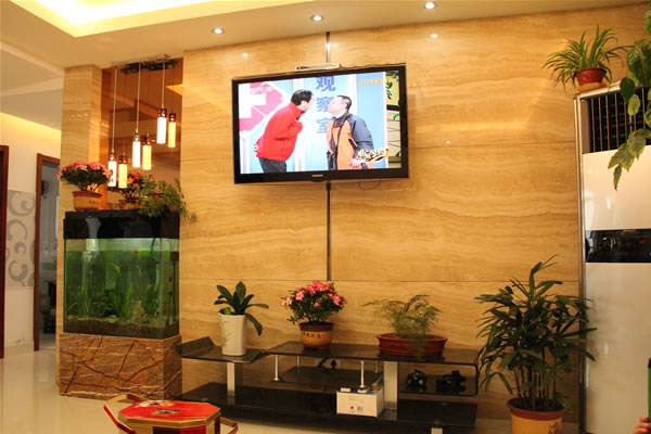 整個裝修完成后,安裝好電視機,表面看不見任何機架零件,電視機在平滑的墻面上上下升降,使人有一種出乎意料的感覺。整體效果豪華美觀,是小康之家以及成功人仕之首選。