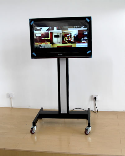 電動遙控電視機機架——移動式移動式電視機機架是在導軌式電視機機架的基礎上在導軌下端安裝了帶有輪子的可移動平臺,動作及控制方式和導軌式一致,可實現(xiàn)在1100毫米范圍內的升降,左右36度的角度調整以及前后15度的俯仰調整,所有動作均為遙控操作。此款支架還可根據需要隨意改變位置。支架底座還附有可伸縮的電腦托架,正面裝飾板可選用噴繪玻璃,印花樹脂板等材料。是一款專為學校教學,電視會議場所以及商場,展覽館等臨時需要可視設備的工作需要而開發(fā)研制的產品。